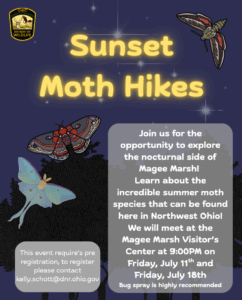 The events require pre-registration. Please contact kelly.schott@dnr.ohio.gov.